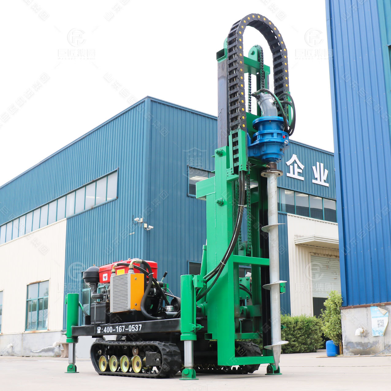 GFDD系列光伏地钉钻机是一款专门用于光伏发电站建设中地钉安装和钻孔作业的机械设备‌。它采用履带式设计,能够在各种地形上灵活移动,特别适合在山地、坡地等复杂地形中进行施工。‌